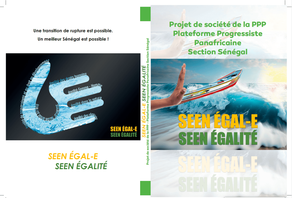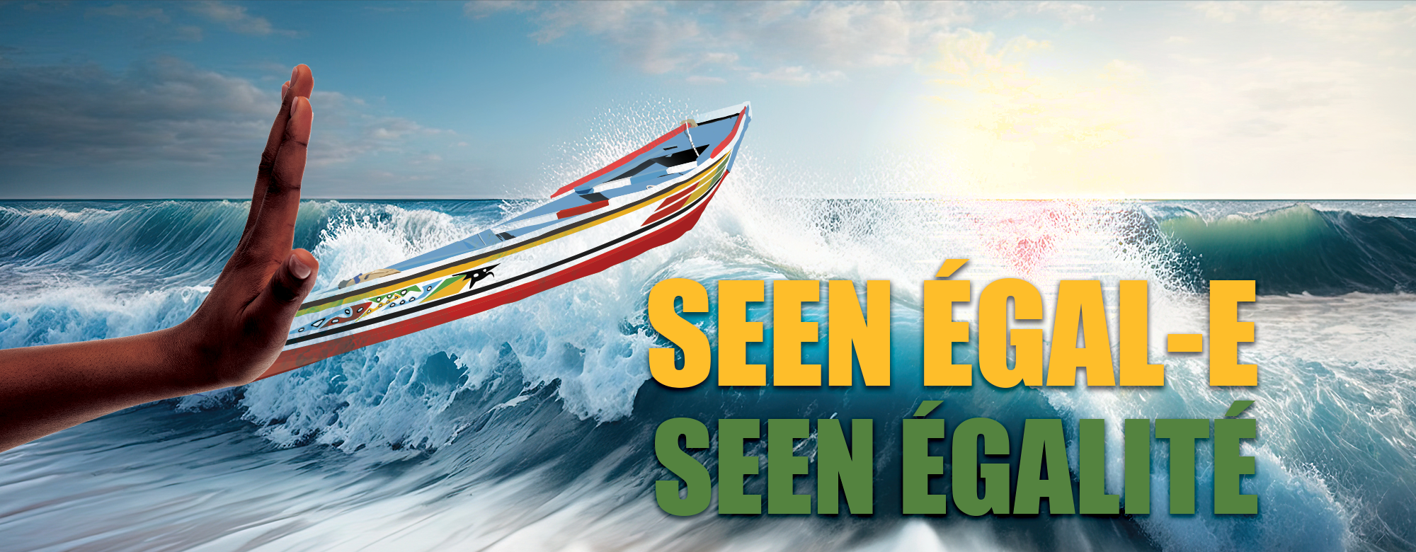Seen Égal-e littéralement votre égal-e -Seen Égalité, votre égalité, jeux de mots sur le nom du pays, traduisant le droit à l’égalité et sa revendication citoyenne à tous les niveaux, comme moyen de redressement du Sénégal.